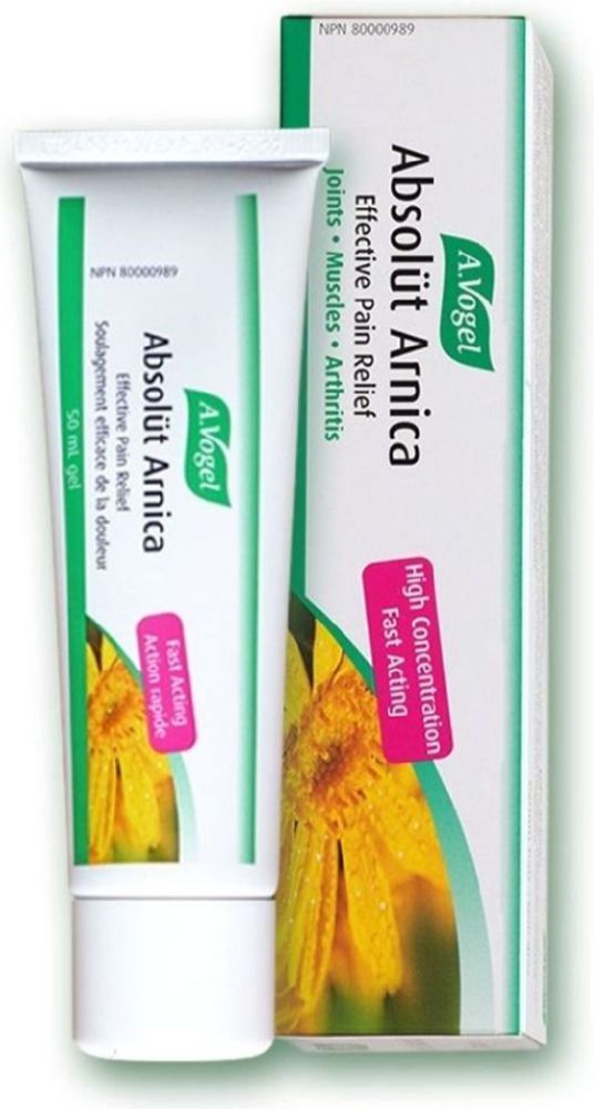 A. VOGEL - Absolut Arnica - 50 Millilitre(s) - NPN: 80000989 -- Osteoarthritis symptoms? A.Vogel Arnica gel relieves osteoarthritis pain in the knee and hand. Efficacy without the side effects of synthetic painkillers. Absolüt Arnica gel is a herbal remedy made from extracts of fresh Arnica flowers and is an easy-to-apply non-greasy gel.It is ideal if you are looking for a treatment to relieve pain and/or inflammation in muscles and joints (e.g. sprains, bruises, joint pain). Provides symptomatic relief of pain associated with osteoarthritis in the knee and hand. It can be used up to 4 times daily.